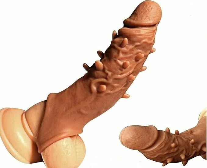 Super-realistic penis extension sleeve for an increase of 1 1/4 inch in length and 30% in girth